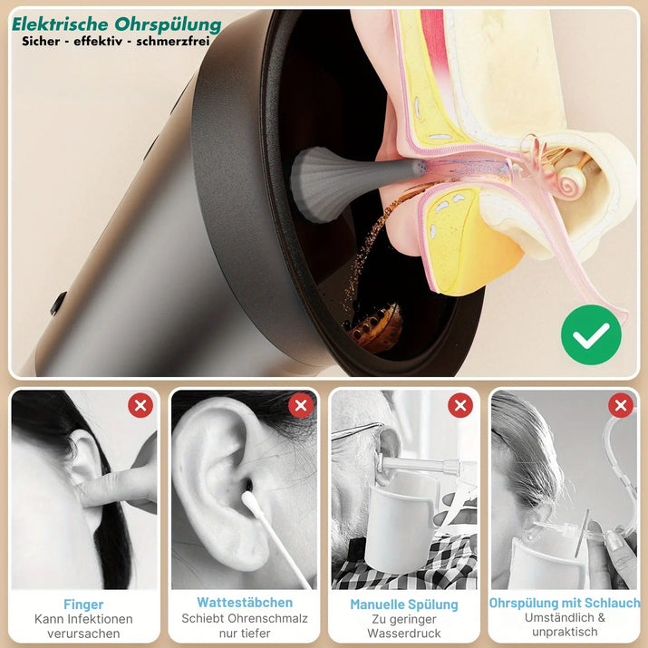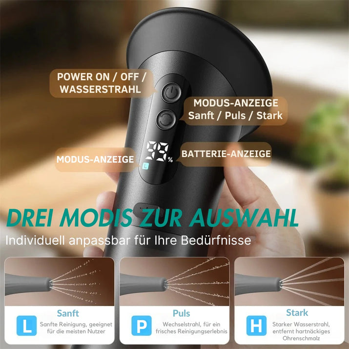 Erleben Sie moderne Ohrhygiene mit sanfter Wasserkraft – gründlich, effektiv und schonend. Ideal für alle, die Wert auf Gesundheit und Wohlbefinden legen.